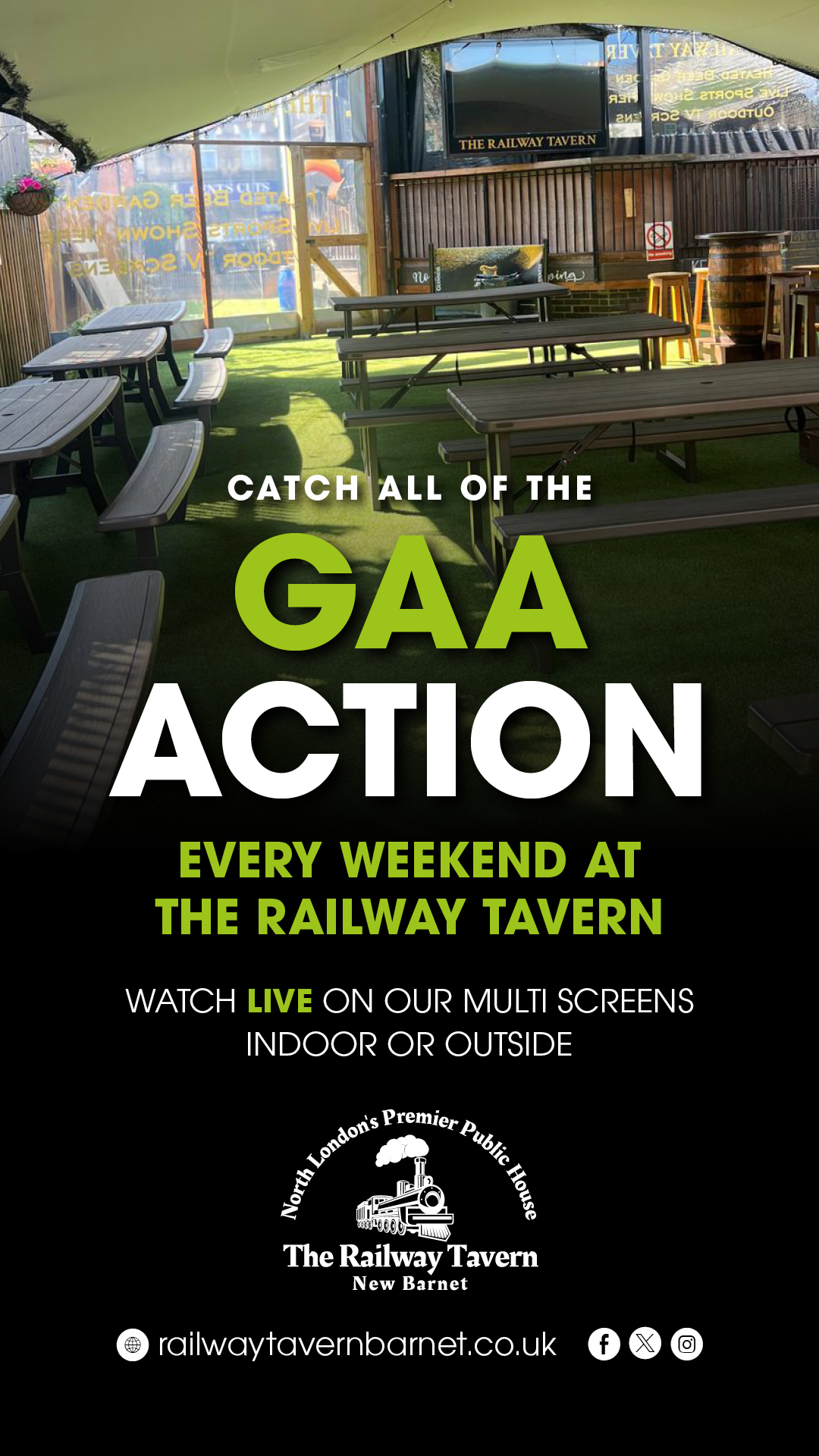 Savor every moment! Indulge in a pint, delicious food, and thrilling live sports on our multi HD screens at The Railway Tavern. Join us for the ultimate game day experience!